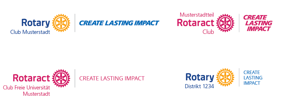 Sie können die Präsidentenbotschaft in das Club- oder Distriktlogo aufnehmen, das Sie bei der Kommunikation mit Clubs, Distrikten und der Öffentlichkeit verwenden. Erstellen Sie Ihr Lockup zur Verwendung in: