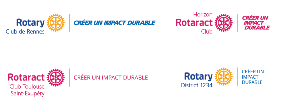 Vous pouvez inclure le message présidentiel dans le logo du club ou du district que vous utilisez pour communiquer avec les clubs, les districts et le public. Créez votre logo en cohabitation et utilisez-le pour les :